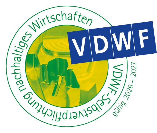 Der Verband Deutscher Werkzeug- und Formenbauer (VDWF) vergibt das Siegel „VDWF-Selbstverpflichtung nachhaltiges Wirtschaften“. Damit bekennen wir uns ausdrücklich zu einer verantwortungsvollen Unternehmensführung, indem wir unser Wirtschaften und Handeln nachhaltig ausrichten, z.B. an den Nachhaltigkeitszielen der Vereinten Nationen.